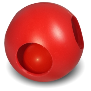 Made with your pet’s safety in mind. Molded of hard, thick polyethylene plastic. Purchase a size that is slightly larger than your dog’s mouth. The toy should be large enough that the dog cannot fit the ball into his mouth. The original Virtually Indestructible toy. Always supervise your pet with their toys, play responsibly!